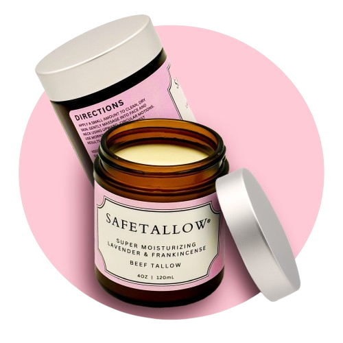 BOVINE TALLOW (GRASS-FED BEEF TALLOW, ALOE BARBADENSIS LEAF JUICE (ALOE VERA JUICE, SIMMONSSIA CHINENSIS (JOJOBA) SEED OIL (JOJOBA OIL), CETEARYL ALCOHOL (AND) POLYSORBATE 60 ,CETYL ALCOHOL, LACTOBACILLUS FERMENT, TOCOPHEROL (VITAMIN E), BOSWELLIA SERRATA OIL FRANKINCENSE ESSENTIAL OIL, LAVANDULA ANGUSTIFOLIA (LAVENDER) OIL (LAVENDER ESSENTIAL OIL).